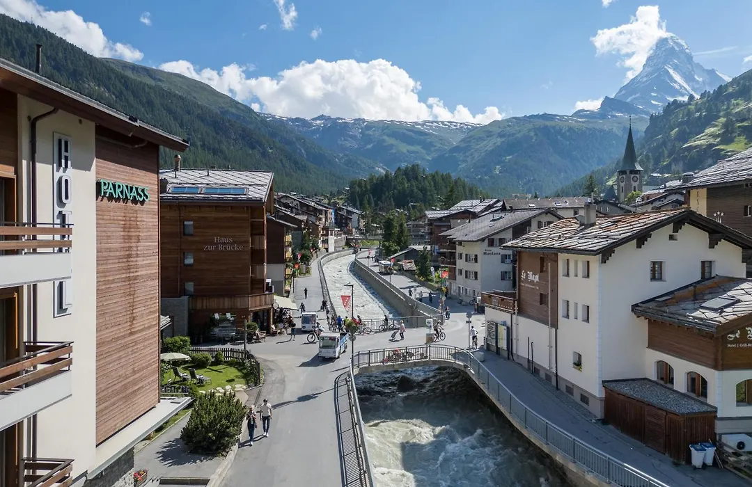 Bedeutende Orte in Zermatt wie die Gornergratbahn und Seilbahn Gant–Hohtälli befinden sich in der Nähe. Das Parnass befindet sich in 150 Meter Entfernung von der Pfarrkirche St. Mauritius Zermatt und kann in etwa 5 Minuten vom Zentrum von Zermatt erreicht werden. Das Hotel liegt auch in der Nähe von Bergen, und Matterhorn ist circa 20 Minuten zu Fuß von der Unterkunft entfernt. Kulturelle Erlebnisse in der Umgebung bieten die Hängebrücke (liegt 3 km von der Unterkunft). Die Gäste finden die Bushaltestelle Vispa direkt neben dem Hotel Parnass, ca. 5 Gehminuten entfernt.